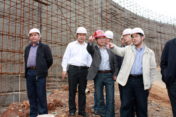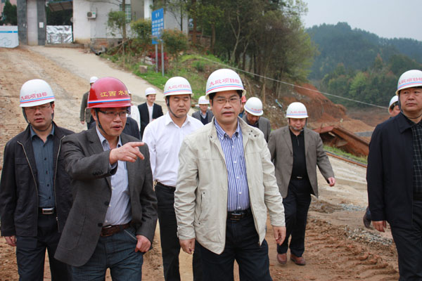 2012年4月6日,江西省水利廳副廳長廖瑞釗在宜春市副市長賴國根的陪同下,深入我公司承建的銅鼓縣大塅水庫除險加固工程項(xiàng)目視察指導(dǎo)工作。