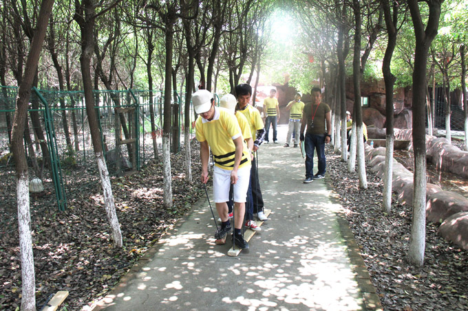 乘車到達農(nóng)莊后,活動的第一項內(nèi)容是隊列訓練,全體人員統(tǒng)一著裝,聽從教練口令,立正、稍息、向右看齊,動作一致,隊列整齊劃一,個個精神抖擻。隊列訓練結(jié)束后,是闖關(guān)奪冠比賽,79人被分為5個小分隊,每隊成員積極發(fā)揮聰明才智,隊長集思廣益,為本隊征集隊名和Logo,并在隊旗上描繪出具有本隊特色的動員口號。每支小分隊發(fā)有一張地圖,起點不同,但都需闖過五大難關(guān),每一關(guān)都規(guī)定隊員必須先完成指定任務,再回答十個問題,用時最少,回答問題準確率最高的一隊為勝。這五大難關(guān)分別是:祥龍獻寶,瑞龍戲珠,猛龍吐珠,潛龍轟天,碧水龍舟。比賽過程中,青年員工們熱情高漲,目標明確,充分發(fā)揮團隊協(xié)作精神,爭分奪秒完成各項任務。這是屬于我們青年人的舞臺,恣意揮灑著青春,布滿汗水的笑臉在陽光下熠熠生輝。經(jīng)過緊張激烈的比拼后,最終第一小分隊奪得最后的冠軍,歡呼祝賀聲響成一片。