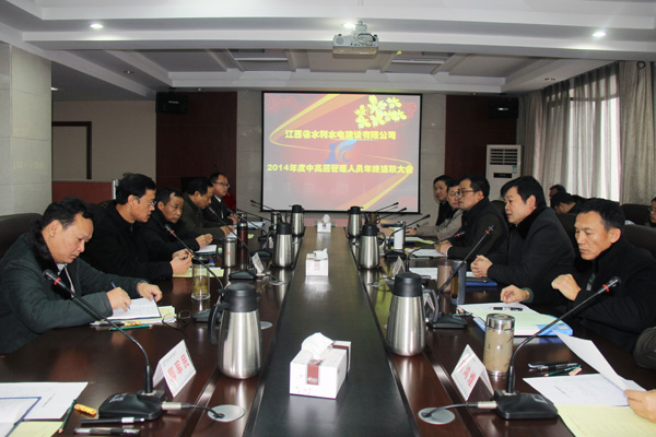 2015年1月31日,江西省水利水電建設(shè)有限公司2014年度年終述職大會(huì)在公司總部順利舉行。公司董事長、黨委書記王元旦,總經(jīng)理徐洪良,國內(nèi)、國外工作的中高層管理人員、項(xiàng)目經(jīng)理代表,員工代表共50多人參加了述職大會(huì)。總經(jīng)理徐洪良主持會(huì)議。