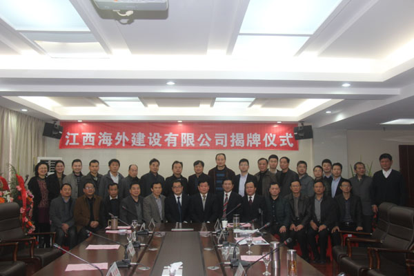 隨后,伴隨著歡樂喜慶的歌曲,總公司董事長王元旦,總經(jīng)理徐洪良與江西海外建設有限公司執(zhí)行董事張周平,總經(jīng)理黃鄭民為新公司揭牌并合影留念。