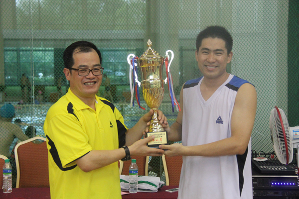 董事長王元旦(獎杯右)為冠軍頒發獎杯