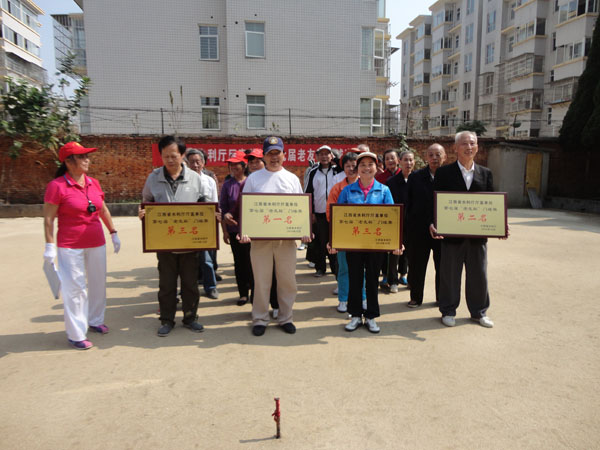 2015年10月28日,我公司門球代表隊參加了江西省水利廳廳直單位第七屆“老友杯”門球賽,本次比賽由江西省水利廳離退休干部處主辦、江西省水利水電建設有限公司承辦,廳直單位共4個代表隊參加。經過緊張激烈的角逐,我公司門球代表隊榮獲本次比賽團體組第一名。 公司門球代表隊是一支由離退休職工組成的隊伍。在賽場上,他們團結一致、密切協作、敢打敢拼,展現了江西水建人良好的精神風貌和不懈奮斗、頑強拼搏的風采。