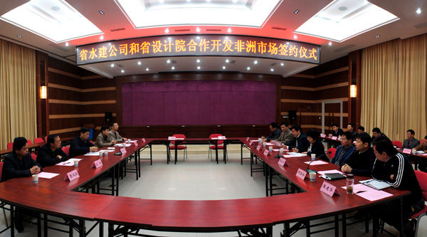 2013年11月13日,我公司與江西省水利規(guī)劃設(shè)計(jì)院合作開(kāi)發(fā)非洲市場(chǎng)暨聯(lián)合成立“江西省水利規(guī)劃設(shè)計(jì)院埃塞俄比亞分院”簽約儀式在省水院會(huì)議中心舉行。江西省水利廳黨委書(shū)記、廳長(zhǎng)孫曉山出席簽約儀式并作重要講話(huà),我公司董事長(zhǎng)兼總經(jīng)理王元旦、省水院院長(zhǎng)孔俐麗分別致辭,并代表雙方簽訂戰(zhàn)略合作協(xié)議。