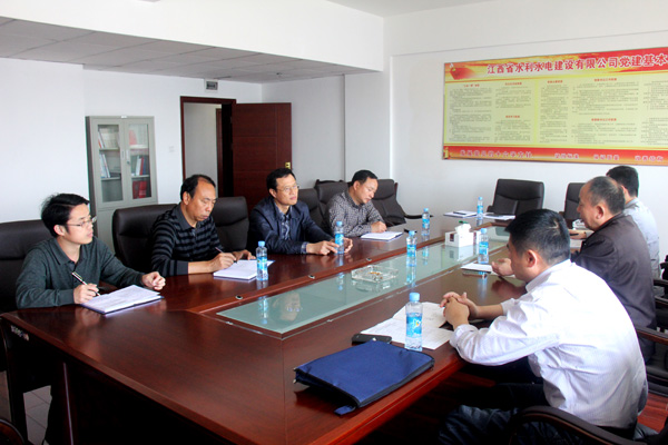2014年5月12日,江西省水利廳廳直機關黨委書記張伯義率副調研員占任生及干事何超,來到我公司進行黨建工作調研并指導工作。調研組一行首先聽取了我公司黨建工作情況的匯報,就2014年我公司黨建工作計劃制定與落實情況,黨支部規范化建設,發展黨員工作以及黨支部建設的現狀進行了交流座談。調研組隨后深入我公司項目部黨支部進行實地調研。