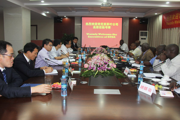 2014年9月上旬,肯尼亞茶葉發(fā)展有限公司董事Philip Kibirech NG’Etich先生一行七人應(yīng)邀來我公司參觀考察,旨在加深雙方了解和建立互惠共贏的合作。總經(jīng)理徐洪良代表公司對他們的到來表示熱烈歡迎,總會計師王義生、總工程師胡鴻煌及海外公司相關(guān)負(fù)責(zé)人參加了會見并陪同肯尼亞客人參觀了公司總部各部門。