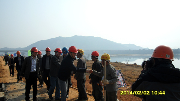 2月2日,正值農(nóng)歷大年初三,江西省水利廳黨委書記、廳長(zhǎng)孫曉山來(lái)到公司承建的峽江水利樞紐樟山防護(hù)工程施工現(xiàn)場(chǎng),親切看望并慰問(wèn)春節(jié)期間仍堅(jiān)守崗位的一線施工人員。