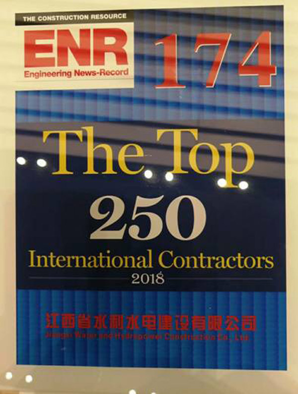 8月31日,“2018年ENR國際承包商250強排名發(fā)布儀式暨業(yè)務交流研討會”在中國對外承包商會舉行。69家本年度“ENR國際承包商會 250強”中國上榜企業(yè)代表等180人出席活動。我司國際排名174位,國內共69家單位上榜,我司國內排名51位,江西水建董事、海外公司總經理黃鄭民代表企業(yè)出席會議并捧回獎牌。