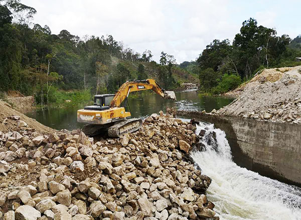 8月23日,印尼安谷奇水電站項目部正式啟動二期截流工作。經過6天的右岸橫向圍堰的進占,8月29日凌晨3點,二期橫向圍堰的合龍和閉氣工作取得圓滿成功。