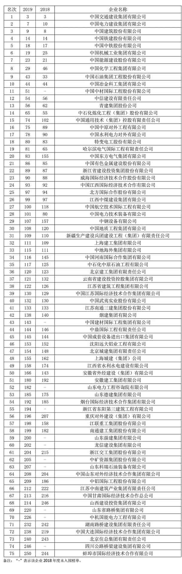 8月22日,2019年度美國《工程新聞紀錄(ENR)》“全球250家國際承包商”榜單揭曉