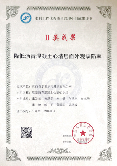 本次大會參報成果690項,涉及全國水利施工、設計、監(jiān)理、咨詢等187家單位。經(jīng)資料評價和現(xiàn)場發(fā)表評價,最終確定522項水利工程優(yōu)秀QC成果。由我公司廖坊灌區(qū)QC小組編寫的《降低拱式渡槽拱肋懸鏈線高度偏差》和埃塞Wolkite瀝青混凝土心墻項目QC小組編寫的《降低瀝青混凝土心墻層面外觀缺陷率》兩項QC成果榮獲2019年水利工程優(yōu)秀QC成果二等獎(II類獎)。