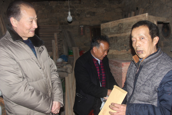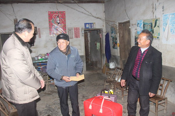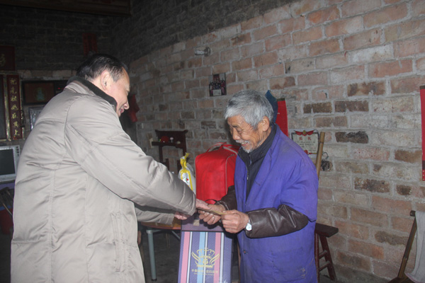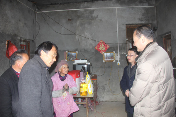在貧困戶羅華妹家里,當老人接過大米和食用油等慰問物品后,頓時眼含淚花,激動的拉著史主席的手說:“這么冷的天,你們能來看我這個老太婆,我真的很高興,共產黨的政策真好!”,史主席鼓勵羅華妹說:“要堅定信心,黨的政策很好,我們也會多想一些能改變家庭生活和增加收入的辦法,你們家里要積極配合黨委政府和村委會的工作,爭取早日脫貧致富。”
